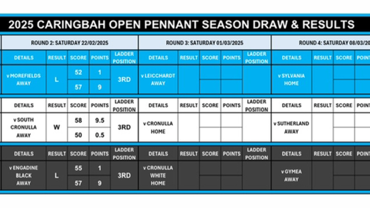 Caringbah 2025 Open Pennant Round 2 Review